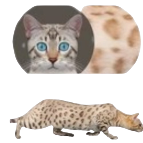 - Snow (Nieve): Son gatos de color blanco o crema muy claro. Las manchas son más oscuras que el fondo y varían según el tipo de snow (Snow Lynx, Snow Mink y Snow Sepia), que se distinguen por los ojos y el contraste de las manchas.